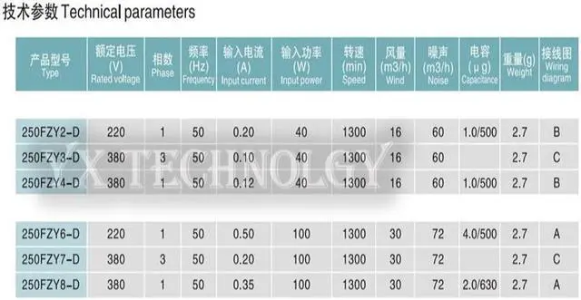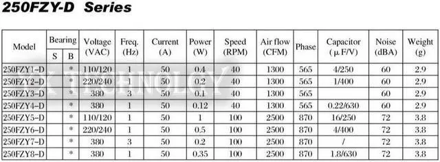 250FZY6-D axial flow fan 100W 220V 50HZ 0.5A 1300min cabinet cooling fan all copper motor