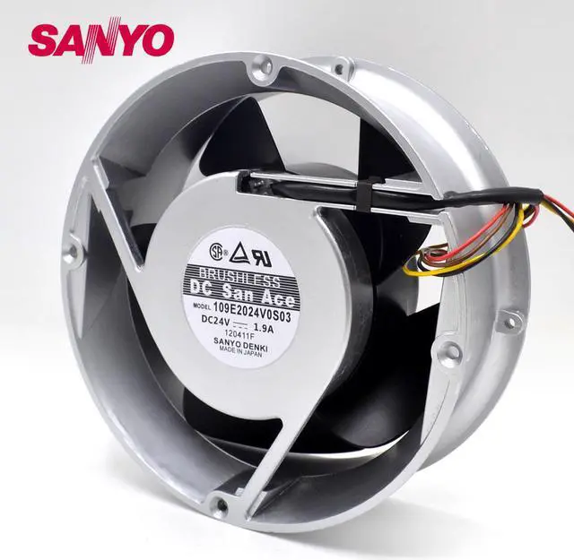 Model: 109E2024V0S03Size: 200*200*70MMVoltage: 24VWorking voltage:21.6V - 26.4VCurrent: 1.9APower: 45.6WSpeed: 3200RPMAir volume: 369CFMAir pressure: 287.1PANoise: 57DBAWeight: 1800G