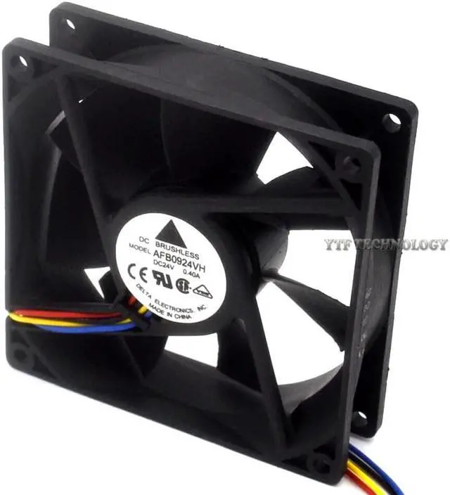 Model : AFB0924VH ( four -wire ) PWM speed control red ( + ) black line ( - ) Dimensions : 92 * 92 * 25MM Voltage : 24V Current : 0.40A Power : 9.6W Speed : 3800RPM Wind : 67.80CFM 1.920m3 / min Pressure : 7.67 mmH2O 0.302 INH2O Noise : 45DBA Use of the environment : -20 ~ 75 ° Life: 60,000 hours Weight : 99G