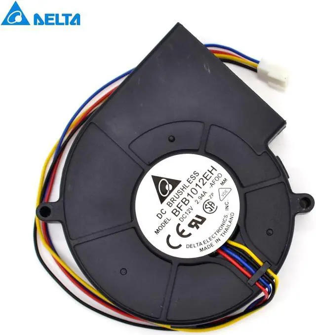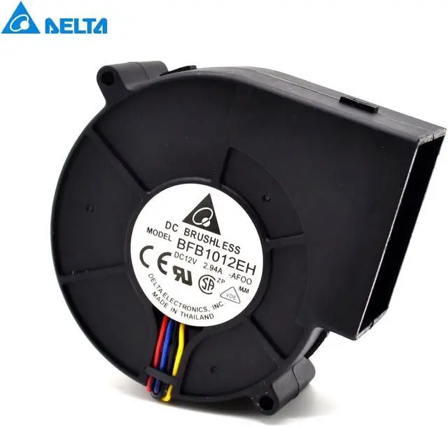 :deltaModel: BFB1012EH-AF00Lead: 3 wiresSize: 97*94*33mmVoltage: DC 12VVoltage range: 7.0-12.6VCurrent: 2.94APower: 35.28WSpeed: 5300RPMAir volume: 46CFMAir pressure: 2.814 InchH2ONoise: 64d-BAOrigin: Thailand
