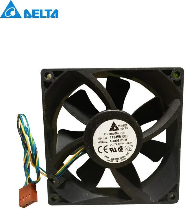 Model: AUB0912HHSize: 92 × 92 × 25mmRated voltage: DC12VVoltage range: DC7.0V-13.6VInput power: 0.40 ASpeed: 3150 r.p.m.Temperature range: -10 .. 70 ° CEstimated life: 25 ° C L10 expected life of 35,000 hoursBearing structure: maintenance- double ball bearingsDirection of rotation: the wind is discharged from the bracket, facing the rotor counterclockwise rotationWiring method: + yellow - black speed green PWM: blueMaximum air volume: 98.4 m3 / hMotor protection: Wrong level protection and stall protection locks flowMinimum wind pressure: 0 .. 55 PaNoise: 38.0 dB (A)Material: glass fiber reinced plastic, PBT housing, PA bladeFunction Description: Electronic the outer rotor DC fan, complete electronic commutation parts
