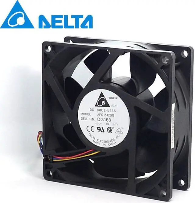 []:Delta[ Dimensions ]: 150 × 150 × 50mm[ Rated voltage ]: DC12V[ Voltage Range ]: DC8.0-14.0V[ Input Power ]: 1.80A ( nominal current )[ Rated speed ]: 3800 r.p.m[ Temperature Range ]: -10 - 70 ° C[ Life expectancy ]: 25 ° C when the life expectancy of 50,000 hours L10[ Bearings] : Maintenance- double ball bearing[ Rotation] : air discharged from the stent , in the face of the rotor counterclockwise rotation[ Wiring ] : + Red - Black signal: blue[ Maximum amount of wind ]: 440.0 m?3;; / h[ Motor Protection ] : overload , wrong level protection and stall protection locks flow[ Wind pressure ]: 123 Pa[ Noise index ]: 56.5 dB (A)[ Material Material ] : Glass fiber reinced plastic , PBT housing , PA blade[ Function Description ] : E external rotor DC fans, complete electronic commutation components