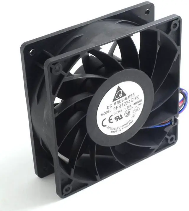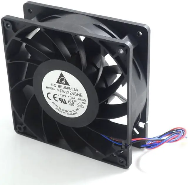 Model: FFB1224SHESize: 120 * 120 * 38 mmVoltage: 24 vCurrent: 1.2 APower: 28.8 WSpeed: 5500 RPM53 the dba noise:Fan spin to: look from the direction of the blades to counterclockwiseOperating temperature: - 10 c to + 70 degrees CelsiusStorage temperature: - 40 c to + 70 degrees CelsiusUsing the environment: - 20 ~ 75 °Service life: 60000 hours