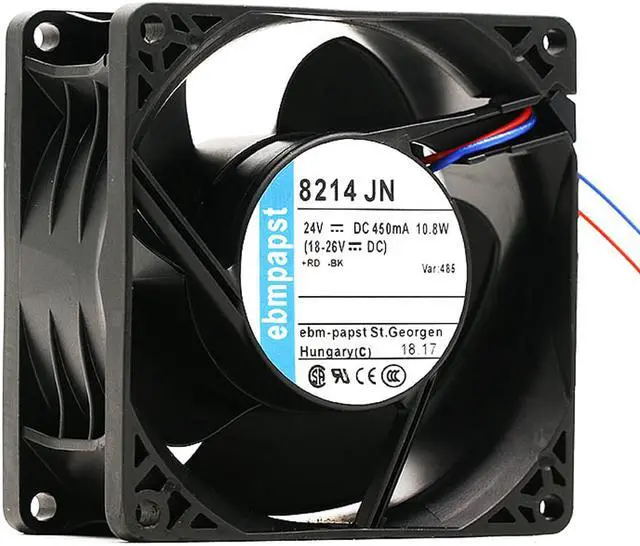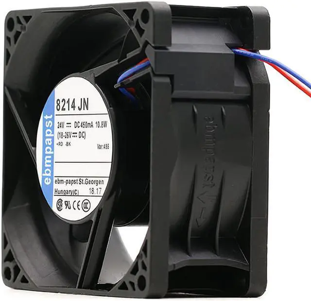 Part Number: 8214JNSeries: 8200JRated voltage: 24VDCSize: Square - 80mm long x 80mm high x 38mm wideAirflow: 78.0 CFM (2.21m?/min)Bearing type: ballFan type: tube shaftNoise: 55 dB(A)Power (W): 10.0WRPM: 8400 RPMTermination: 2 leadsWeight: 0.353 lbs (160.12g)Working temperature: -4 ~ 158 °F (-20 ~ 70 °C)