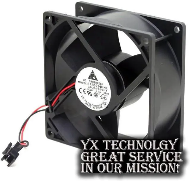 : Delta deltaModel : EFB0924HHEDimensions : 92X92X38MMVoltage : 24VCurrent : 0.30AWind : 57.92CFM 1.64m3 / minRpm : 4200RBMNoise level : 38.0dB-AFan Frame : plastic injection molding , PBT + 30% glass fiber + VO grade flame retardantBlade: plastic injection molding , PBT + 30% glass fiber + VO grade flame retardantFan rotation : counterclockwise as viewed from the fan to runTemperature: -20 degrees C to +70 degrees Celsius Storage temperature: -40 degrees C to +80 degrees CWorking life: ambient temperature of 25 degrees 100,000 hours