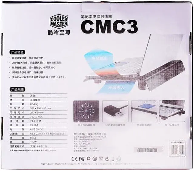 Cooler Master CMC3 Ultra-Slim Laptop Cooling Pad with 200mm Silent Fans Notebook Cooler Pad Base For Laptop 9''-15.4''