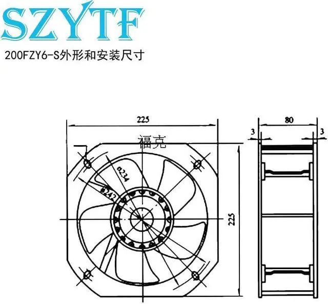 AC fan 225*225*80mm 200FZY6-S 220V 85W high temperature resistance Axial