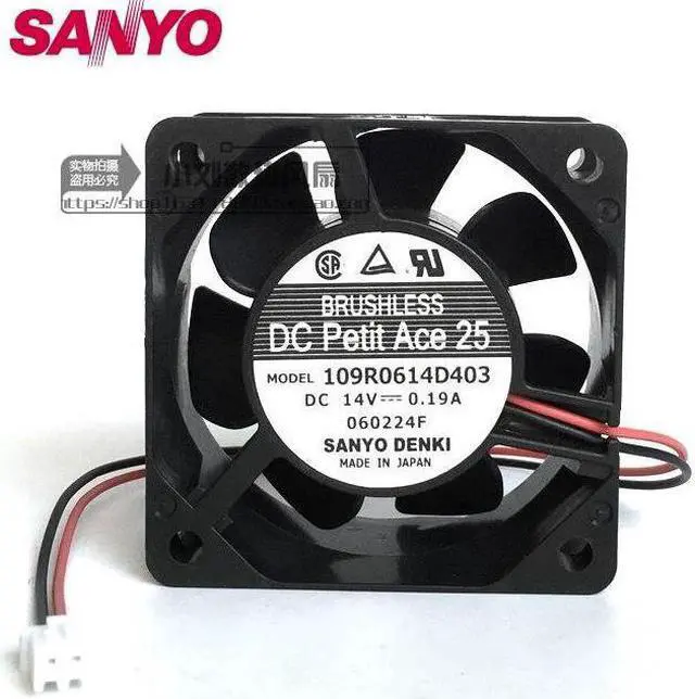 6025 14v 0.19A double ball bearing cooling fan 109R0614D403 2 wires 60*60*25MM