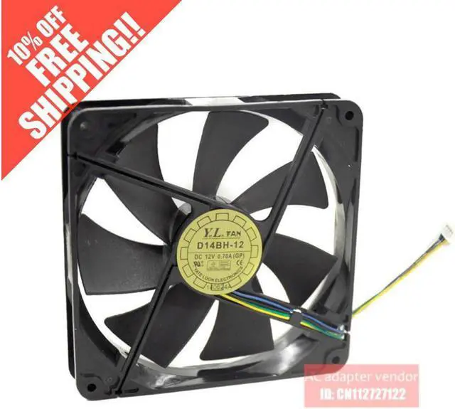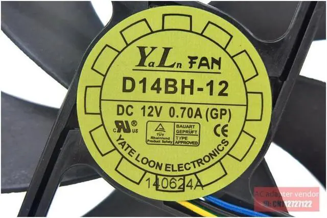 new YATE LOON D14BH-12 14025 14CM Double ball bearing 12V 0.70A 4 wire PWM cooling fan
