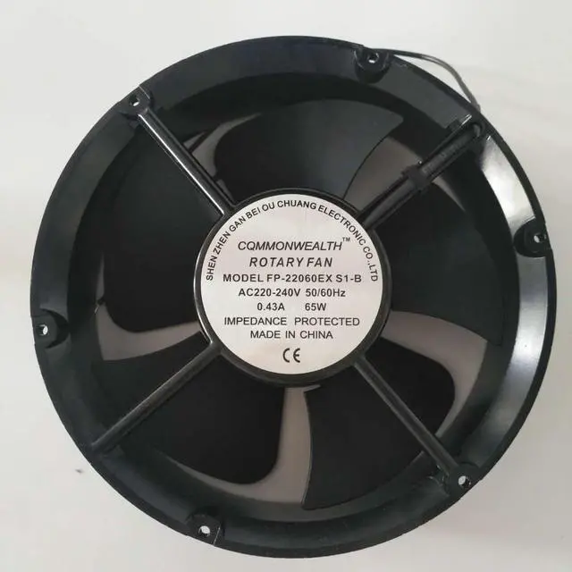 Size: 200x200x60mmBrand: CommomwealthPlace of Origin: China (China)Model number: 20060Bearing structure: B: BALL (ball bearing)Voltage: AC 220V-240VPower: 65 (W)Frequency: 50/60 (Hz)Speed: 2300-2700 (R/min)Air volume: 335\350 (CFM)Noise: 64\66 (dB-A)Weight: 1450 (g)Packing: Bulk, no separate box, 10 sets of styrofoam foam packaging / 1 full case;Frame: black-painted aluminum alloy die-casting anti-corrosion and moisture-proof structure;Wind leaf: injection molding, PBT + 30% glass line + VO grade flame retardant;Bearing: low noise imported ball bearing;Insulation: Enameled wire is made of Class B insulation and has a temperature resistance of 120 degrees Celsius;Wiring method: lead typeInsulation resistance: 500 megaohms or more;Withstand voltage: leakage current 0.5mA. Withstand voltage 1500V / 1 minute;Operating voltage: 220V (voltage range: 180V ~ 220V)Fan rotation: counterclockwise from the direction of the blade;Ambient temperature (°C): -20°C~75°CB: (ball bearing)Life: Working environment temperature 40 ° C B: (ball bearing) 40000-60000 (hours)Application field Medical Rail vehicle Drive cooling Hotel Industrial cleaning Electronic product New energy vehicles SupermarketRegards for the Centrifugal/Axial fan,we have many differents models following for your reference,any your requirements ,our group will try our best to serve you.
