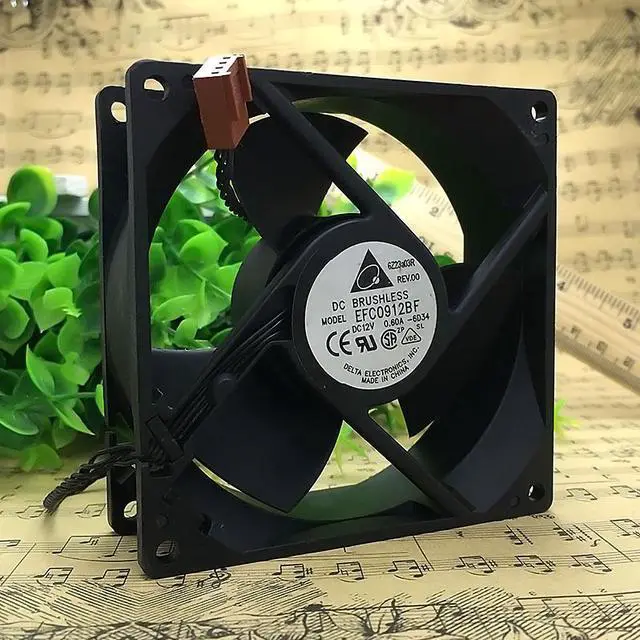Brand : TaiwanDeltaModel: EFC0912BFSize: 90 × 90 × 32MM; also 92X92X32MMVoltage: DC12V;Current: 0.60A; -5H95Plug: four-wire motherboard standard 4P plug line length about 20 cmAir volume: 69.56 CFM;Power: 7.2 W;Number of revolutions: 3800RPM;Noise: 39.5 decibelsFan frame: injection molding, PBT + 30% glass fiber + VO grade flame retardant;Wind blade: injection molding, PBT + 30% glass fiber + VO grade flame retardant;Fan rotation: counterclockwise from the direction of the blade;Operating temperature: -10 degrees Celsius to +70 degrees Celsius;Storage temperature: -40 degrees Celsius to +70 degrees Celsius;Bearing: high precision ball bearingAxial FanAxial fans are a type of fan commonly used in everyday applications such as air conditioners, computers and laptops. It allows air and gas (depending on the application) to flow directly through the fan at different speeds in the axial direction. Allow airflow in and out of the axial direction. The most common models have fewer impeller blades than conventional ducted or centrifugal fans, but their operation is similar. Ball bearings or bushing bearings are most commonly used for axial fans. But ceramic bearings are also used.Advantages of the ebmpapst fan1) Air flow up to 35000m3 / h2) Sturdy steel plate3) Compact design of external rotor motor4) Forced electronic cooling5) Suitable for a variety of applications6) 100% speed control via analog or serial interface7) Simple start-up with perfectly matched components: open loop control, motor, fan8) Plug and playOur serviceQuality assurance is the premise: brand new original authentic, ebm-papst original factory custom.Price concessions are the basis: as an Priscilla-level authorized agent, we have a more affordable price for your reference.Enthusiasm is the attitude: every customer is a boon to us, we will be full of passion and hospitality.Good selection plan : the technician can provide you with a more perfect fan solution, avoiding the wrong selection of the fan, thus you will no longer worry about the selection of the fan.mpact design. The entire product line is available in both AC and GreenTech EC technology.Application field Medical Rail vehicle Drive cooling Hotel Industrial cleaning Electronic product New energy vehicles SupermarketRegards for the Centrifugal/Axial fan,we have many differents models following for your reference,any your requirements ,our group will try our best to serve you.