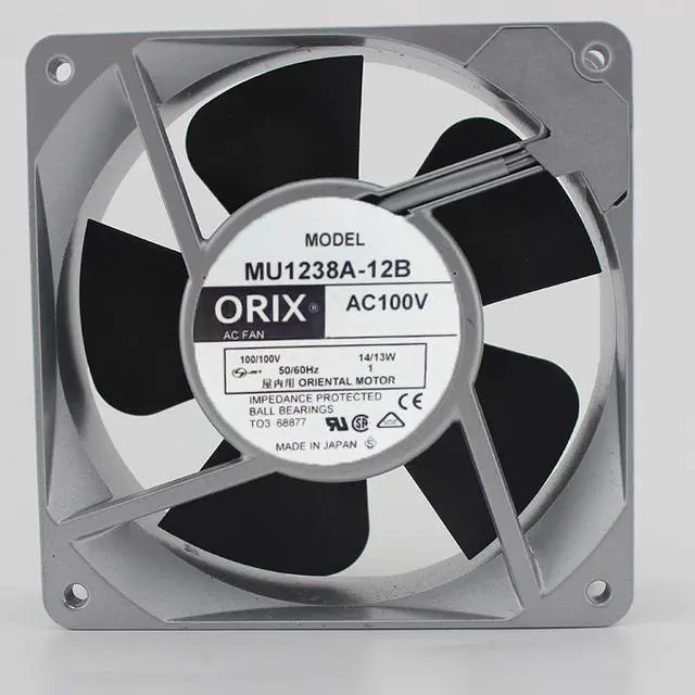Brand: ORIXModel: MU1238A-12BSize: 120 * 120 * 38MMVoltage: 100VCurrent: 0.12 / 0.11APower: 14 / 13WSpeed: 2800 / 3250r / minAir volume: 2.7 / 3.0m3 / minWind pressure: 81PaNoise: 43 / 46dBABearing structure: double ball bearingAxial fansaxial fans prove their reputation as space-saving wonders by moving air for hot or cold air exchange in a wide variety of devices and systems. The outstanding features of axial fans are their small installation depth, low noise level and exceptional efficiency, and are particularly well suited for air flow through heat exchangers. the axial fan becomes a intelligent energy saver for an extremely wide range of applications.Application field Medical Rail vehicle Drive cooling Hotel Industrial cleaning Electronic product New energy vehicles SupermarketRegards for the Centrifugal/Axial fan,we have many differents models following for your reference,any your requirements ,our group will try our best to serve you