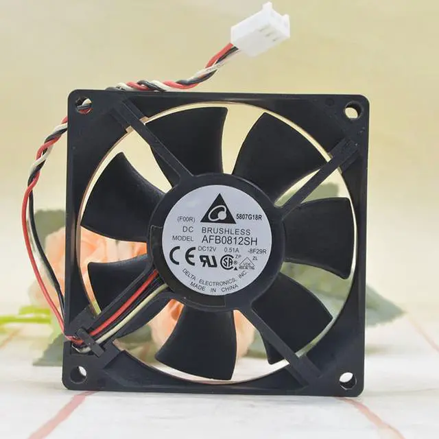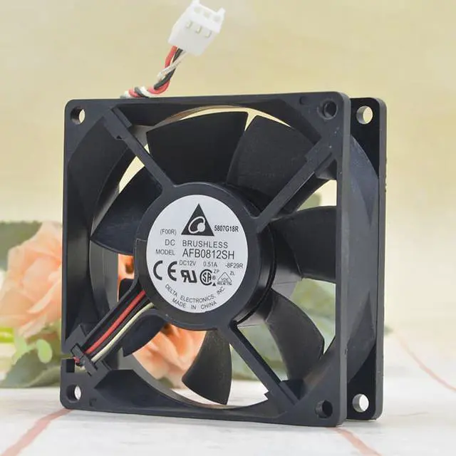 Brand: Taiwan DeltaManufacturer: Delta Electronics Public Co., LtdModel: AFB0812SHSize: 80 * 80 * 25mmBearing: single ball bearingVoltage: 12VCurrent: 0.51ASpeed: 5000 ± 5% RPMNoise: 45DbWind pressure: 44.62CFMNoise: 34dBAInterface: Motherboard 4P interfaceCord length: 10cmApplicable: chassis cooling, CPU radiator, power fan transformation, water cooling auxiliary, game console cooling, high reliability server application places, etcApplication field Medical Rail vehicle Drive cooling Hotel Industrial cleaning Electronic product New energy vehicles SupermarketRegards for the Centrifugal/Axial fan,we have many differents models following for your reference,any your requirements ,our group will try our best to serve you