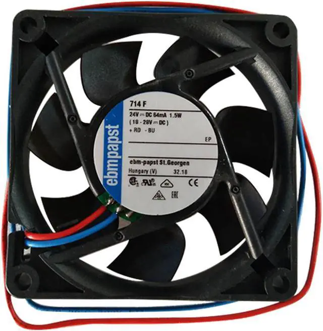 Supply voltage 24 V dcSize 70 x 70 x 15mmAC or DC operation DCHeight 70mmWidth 70mmPower consumption 1.5WMaximum current 63mADepth 15mmAir flow 44m3/hNoise level 38dBFan speed 5300rpmBearing Type Sleeve BearingSeries 700FAxial fansebm-papst’s axial fans prove their reputation as space-saving wonders by moving air for hot or cold air exchange in a wide variety of devices and systems. The outstanding features of axial fans are their small installation depth, low noise level and exceptional efficiency, and are particularly well suited for air flow through heat exchangers. Furthermore, with GreenTech EC technology, the axial fan becomes a intelligent energy saver for an extremely wide range of applications.Advantages of the ebmpapst fan1) Air flow up to 35,000m3 / h2) Sturdy steel plate3) Compact design of external rotor motor4) Forced electronic cooling5) Suitable for a variety of applications6) 100% speed control via analog or serial interface7) Simple start-up with perfectly matched components: open loop control, motor, fan8) Plug and playOur serviceQuality assurance is the premise: brand new original authentic, ebm-papst original factory custom.Price concessions are the basis: as an Priscilla-level authorized agent, we have a more affordable price for your reference.Enthusiasm is the attitude: every customer is a boon to us, we will be full of passion and hospitality.Good selection plan : the technician can provide you with a more perfect fan solution, avoiding the wrong selection of the fan, thus you will no longer worry about the selection of the fan.mpact design. The entire product line is available in both AC and GreenTech EC technology.Application field Medical Rail vehicle Drive cooling Hotel Industrial cleaning Electronic product New energy vehicles SupermarketRegards for the Centrifugal/Axial fan,we have many differents models following for your reference,any your requirements ,our group will try our best to serve you