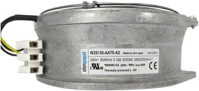 Motor M2S052-CAPhase 1~ 1~Nominal voltage / VAC 230 230Frequency / Hz 50 60Method of obtainingdata fa faValid for approval/standard CE UL 2111Speed (rpm) / min-1 2350 2300Power consumption / W 30 33Current draw / A 0.19 Min. ambienttemperature / °C -25 -25Max. ambienttemperature / °C 80 85Detailed ImagesProduct detailed informationEbm-papst W2S130 tube mounted axial AC fanAn axial fan is a device that generates airflow by rotating a blade enclosed in a square or circular frame using a motor. The rotating fan blade draws air into the fan and vents the airflow in the same direction, flowing through the surface to cool it. Axial fans are very important components to ensure smooth operation of mechanical and electronic equipment. Keeping equipment cool is critical because overheating can lead to intricate conditions, including premature component degradation, reduced life, and sometimes complete damage.WS2130 tube mounted axial AC fanThe Ebm-papst W2S130 Series Tube Mounted Axial Fans provide a convenient, affordable solution for all your cooling needs. This compact, high performance equipment cooling fan is designed to generate large amounts of air at low pressures. The low-noise energy-saving fan is made of die-cast aluminum frame with a black coated impeller. The impedance guard pole motor can be integrated into the central fan hub.Main features and advantages of the W2S130 ebm-papst axial fan• Small size allows the fan to be integrated into devices with limited component mounting controls.• Rugged aluminum construction, ideal for industrial applications.• Black coated steel plate impeller that can be welded directly to the rotor.• Ingeniously designed streamlined fan blades provide excellent efficiency and low noise levels.• Impedance-shielded pole motor prevents the fan motor from burning out when the rotor is locked.• Maintenance-free ball bearing system for excellent performance and life expectancy• Balanced on two planes in accordance with DIN ISO 1940• IP20 dust intrusion protectionAdvantages of the ebmpapst fan 1) Air flow up to 35000m3 / h2) Sturdy steel plate3) Compact design of external rotor motor4) Forced electronic cooling5) Suitable for a variety of applications6) 100% speed control via analog or serial interface7) Simple start-up with perfectly matched components: open loop control, motor, fan8) Plug and playOur serviceQuality assurance is the premise: brand new original authentic, ebm-papst original factory custom.Price concessions are the basis: as an Priscilla-level authorized agent, we have a more affordable price for your reference.Enthusiasm is the attitude: every customer is a boon to us, we will be full of passion and hospitality.Good selection plan : the technician can provide you with a more perfect fan solution, avoiding the wrong selection of the fan, thus you will no longer worry about the selection of the fan.mpact design. The entire product line is available in both AC and GreenTech EC technology.Application field Medical Rail vehicle Drive cooling Hotel Industrial cleaning Electronic product New energy vehicles SupermarketRegards for the Centrifugal/Axial fan,we have many differents models following for your reference,any your requirements ,our group will try our best to serve you