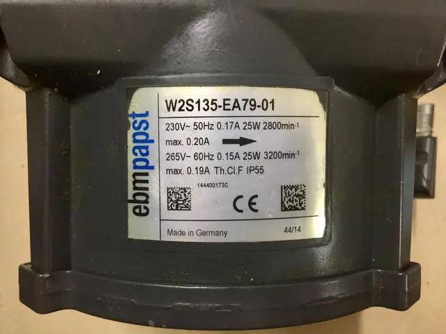 Custom processing: YesItem No. W2S135-EA79-01Type Axial FanBrand Germany ebmpapstModel W2S135-EA79-01Motor power 25(w)Voltage 230/265 (V)Current 0.17 (A)Scope of applicationBlade diameter 135mmSpeed 2800 (r/min)Detailed Images
