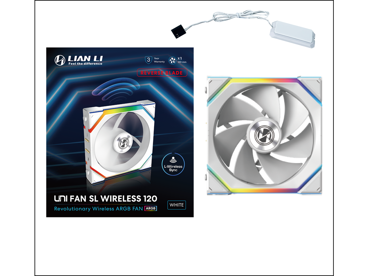 Lian Li UNI Fan SL Wireless (Reverse Blade) 120mm ARGB Fan - Single Pack - 2.4 GHz Wireless Signal for RGB & Fan Control - Daisy-Chain Design - Controller NOT Included & Required - White (12RSL1W1W)