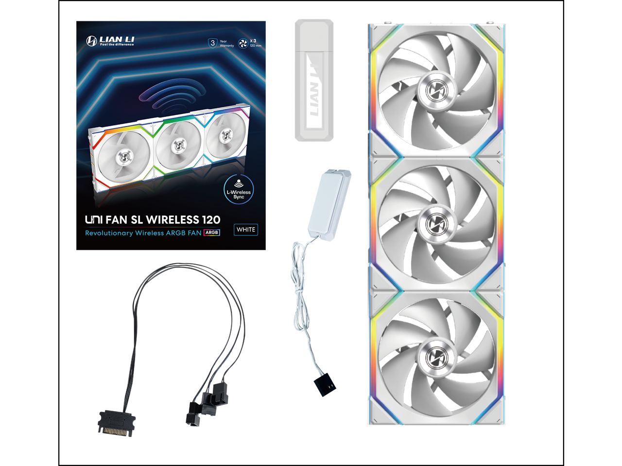 Lian Li UNI Fan SL Wireless 120mm ARGB Fan - Triple Pack - 2.4 GHz Wireless Signal for RGB & Fan Control - Customizable Lighting Effects - Controller Included & Required - White (12SL1W3W)