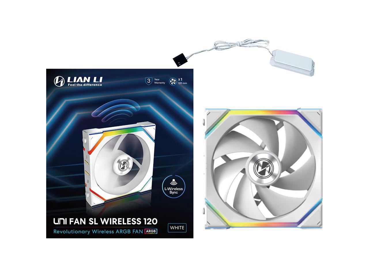 Lian Li UNI Fan SL Wireless 120mm ARGB Fan - Single Pack - 2.4 GHz Wireless Signal for RGB & Fan Control - Daisy-Chain Design - Controller NOT Included & Required - White (12SL1W1W)