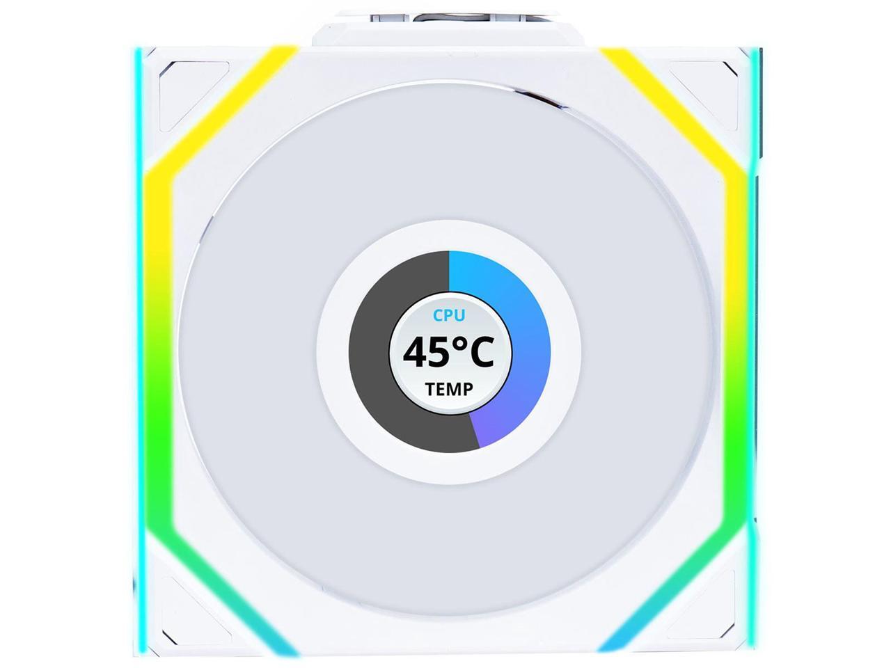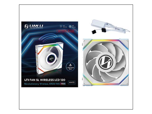 Lian Li UNI Fan SL LCD Wireless (Reverse Blade) 120mm ARGB Fan - Single Pack - 1.6" LCD - 2.4 GHz Wireless Signal for RGB & Fan Control - Controller NOT Included & Required - White(12RSLLCD1W1W)