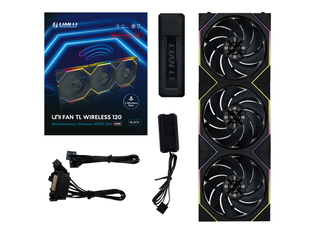 Lian Li UNI Fan TL 120 Wireless - Triple Pack (Reverse Blade) - 2.4 GHz Wireless Controller Included - Infinity Mirror Design - Controller required. - Black (12RTL1W3B)
