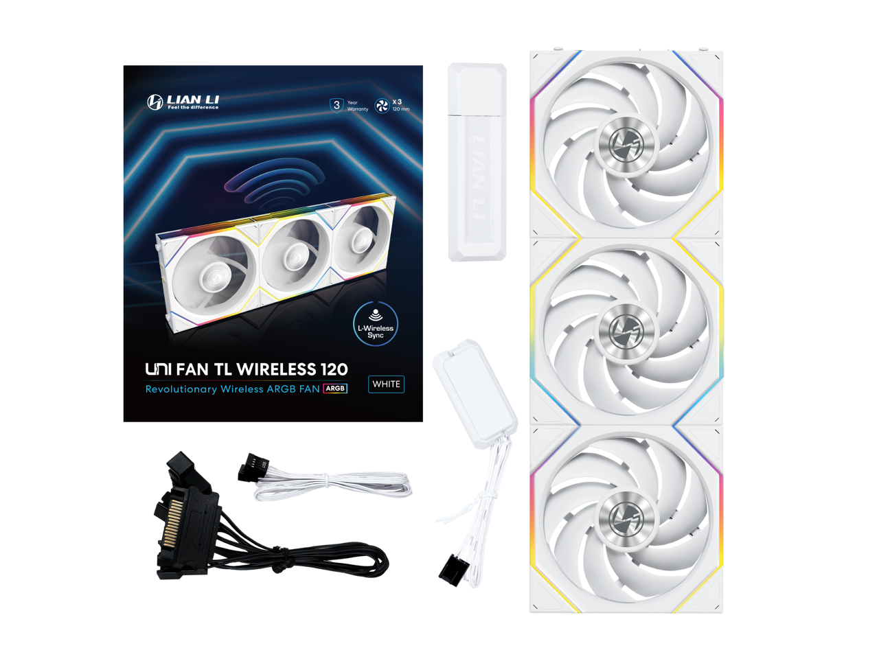 Lian Li UNI Fan TL 120 Wireless - Triple Pack - 2.4 GHz Wireless Controller Included - Daisy Chain & Infinity Mirror Design - Controller reqired. - White (12TL1W3W)