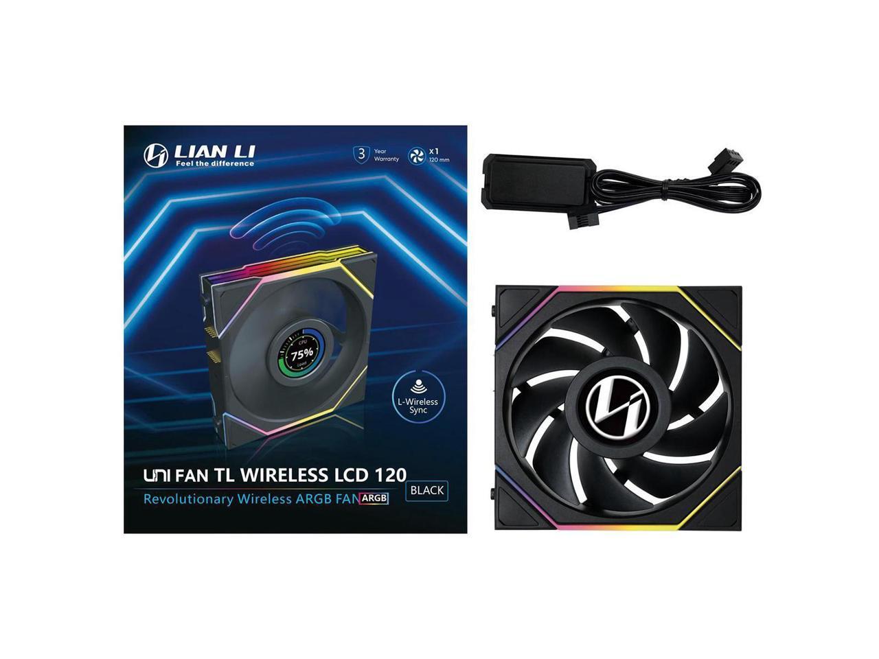 Lian Li UNI Fan TL LCD 120 Wireless - Single Pack - Controller Not Included - 2.4 GHz Wireless Control - Infinity Mirror Design - LCD Display - Controller requesd for use. - Black (12TLLCD1W1B)