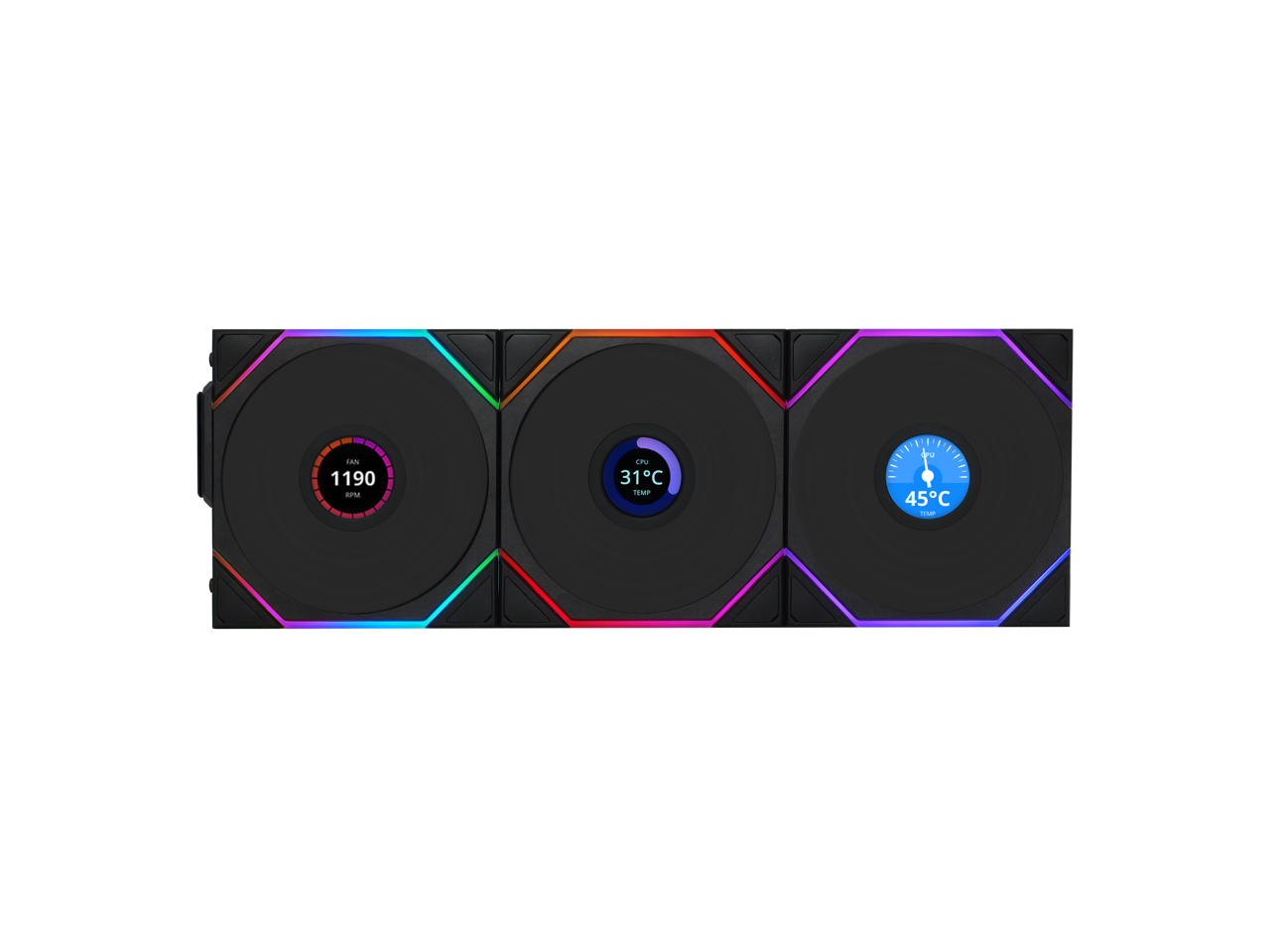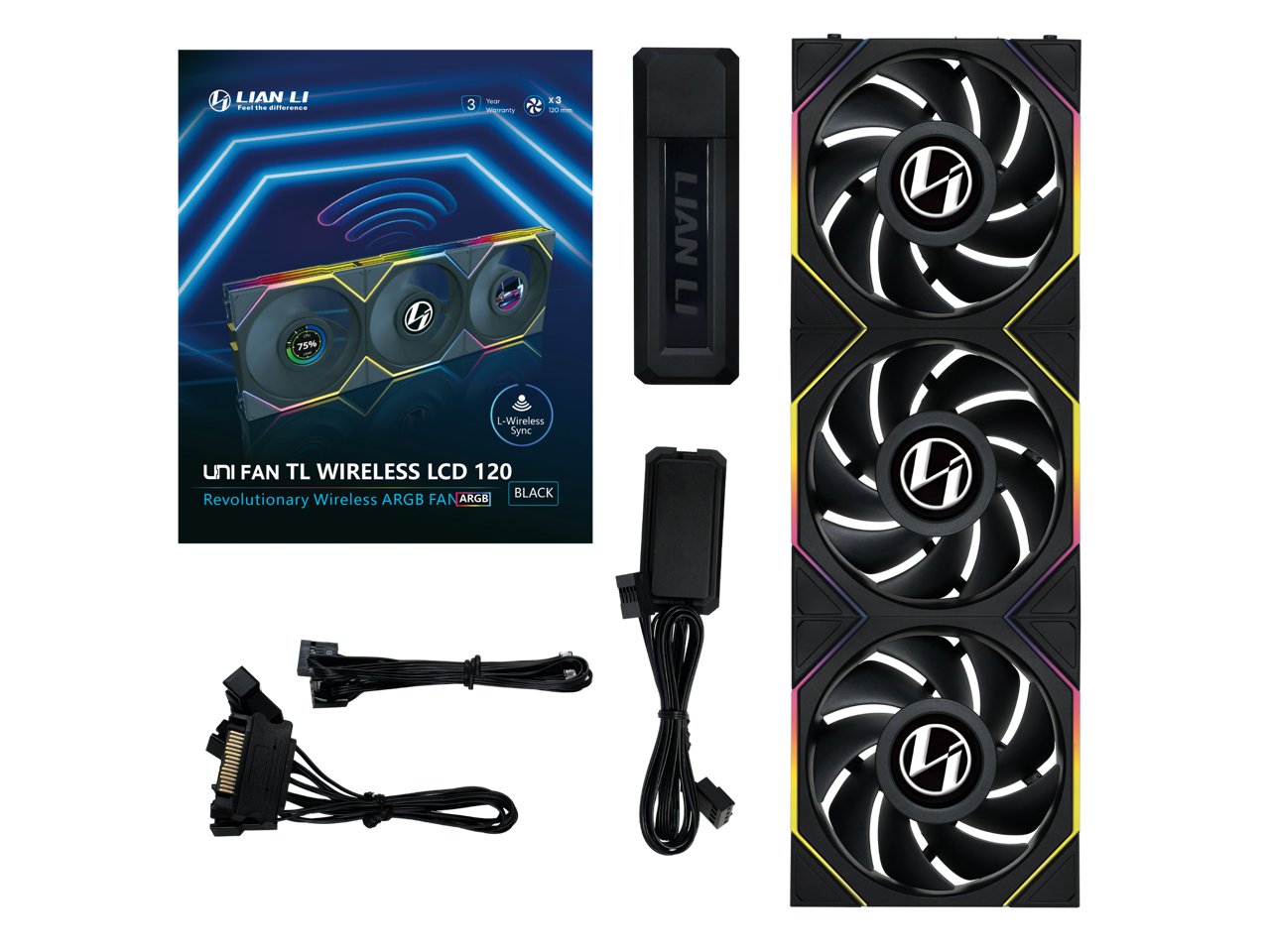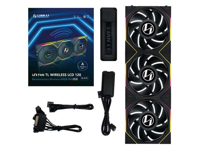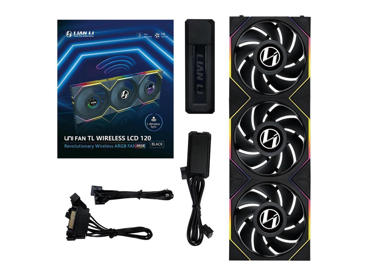 Lian Li UNI Fan TL LCD 120 Wireless - Triple Pack - 2.4 GHz Wireless Controller Included - Daisy Chain & Infinity Mirror Design - LCD Display - Controller required. - Black (12TLLCD1W3B)