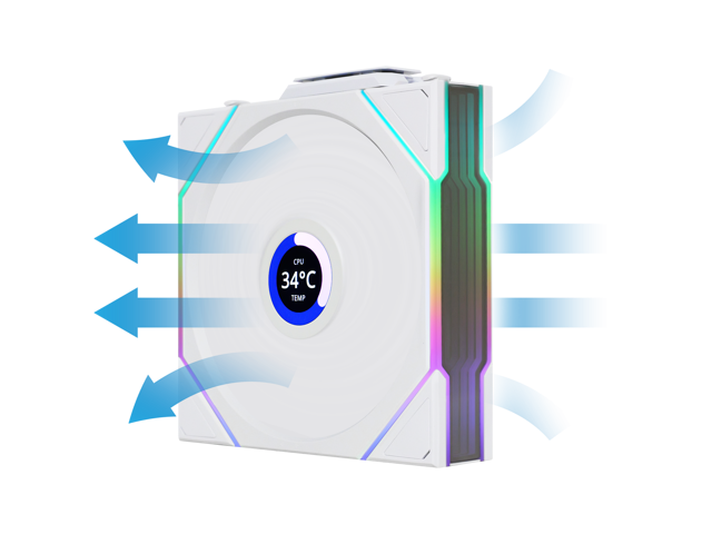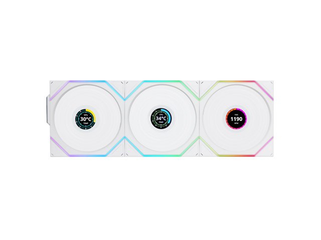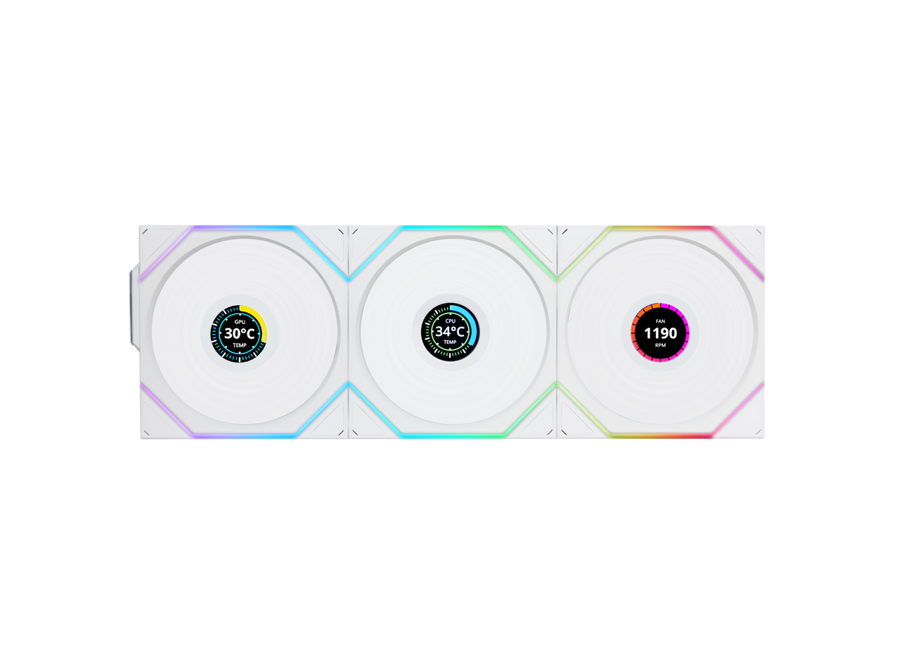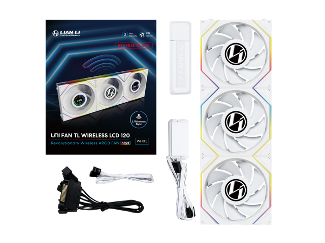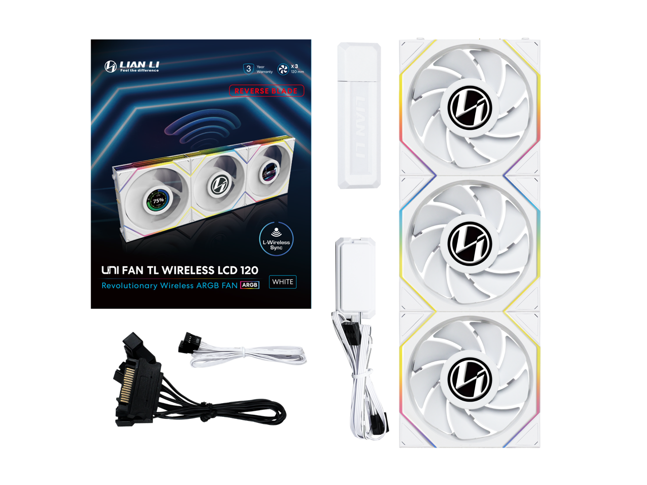 Lian Li UNI Fan REVERSE BLADE TL LCD 120 Wireless - Seamless Wireless Control Fan w/LCD Screen - LCP Fan Blade - Daisy-Chained Style - Triple Pack with Controller - White (12RTLLCD1W3W)