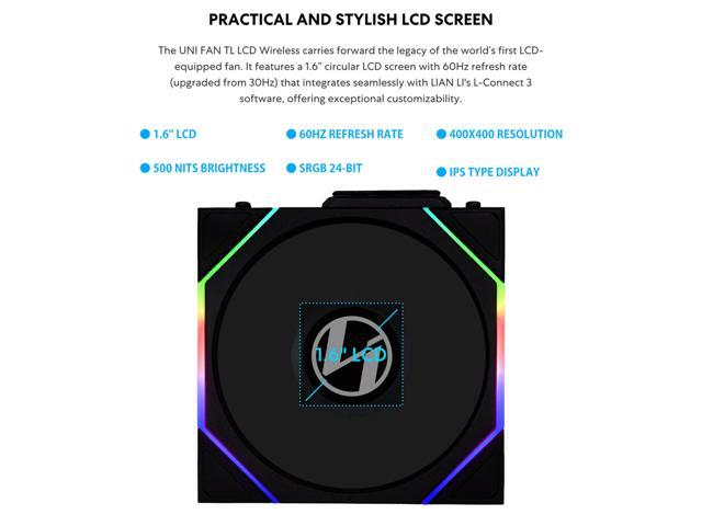 Lian Li UNI Fan TL - LCD Wireless 140 - Single Pack - 2.4 GHz Wireless Signal ARGB Fan Control - Dual-Zone Lighting - FDB - 140mm - LCD Display - Controller NOT Included & Required -Black(14TLLCD1W1B)
