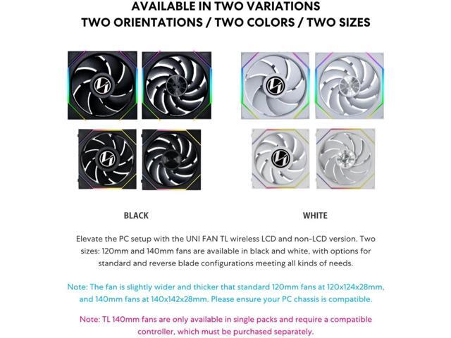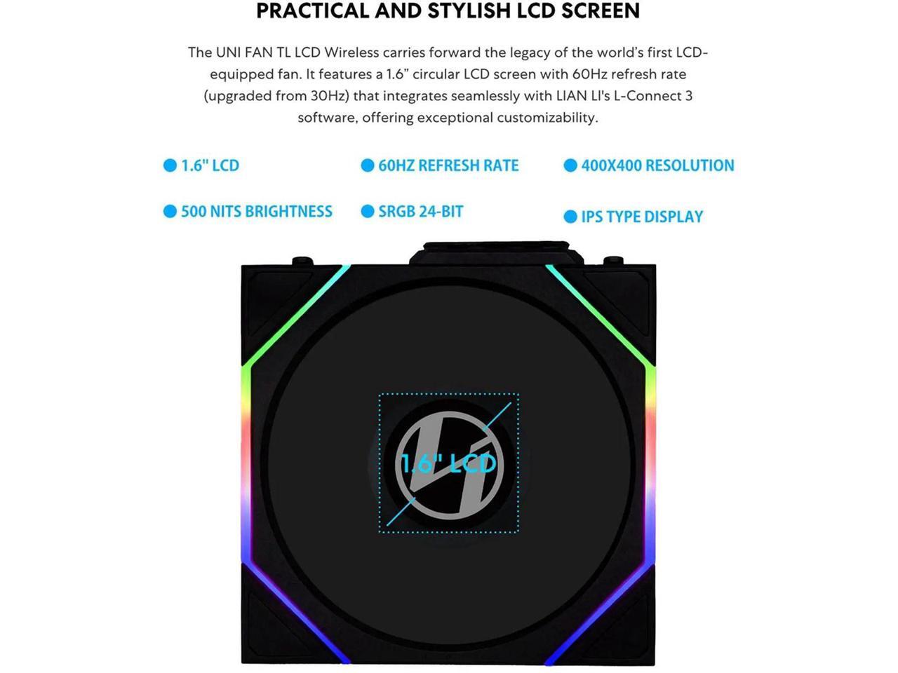 Lian Li UNI Fan TL - LCD Wireless 140 - Single Pack - 2.4 GHz Wireless Signal ARGB Fan Control - Dual-Zone Lighting - FDB - 140mm - LCD Display - Controller NOT Included & Required -White(14TLLCD1W1W)