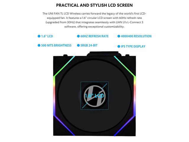 Lian Li UNI Fan TL - LCD Wireless 140 - Single Pack (Reverse Blade) - 2.4 GHz Wireless Signal ARGB Fan & Dual-Zone Lighting Control - 140mm - Controller NOT Included & Required -White (14RTLLCD1W1W)