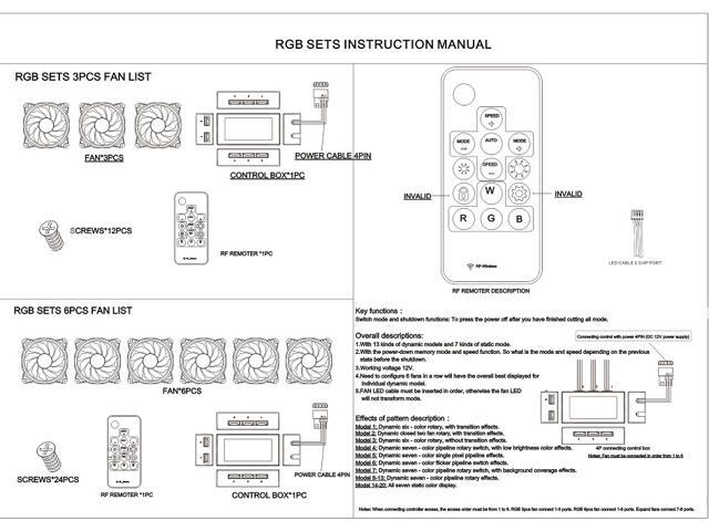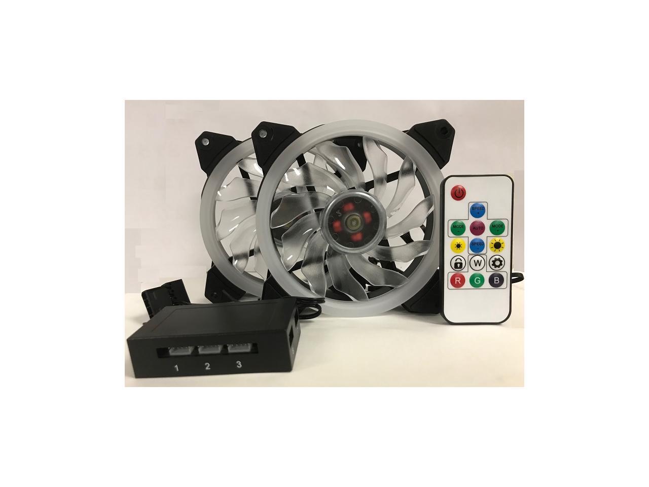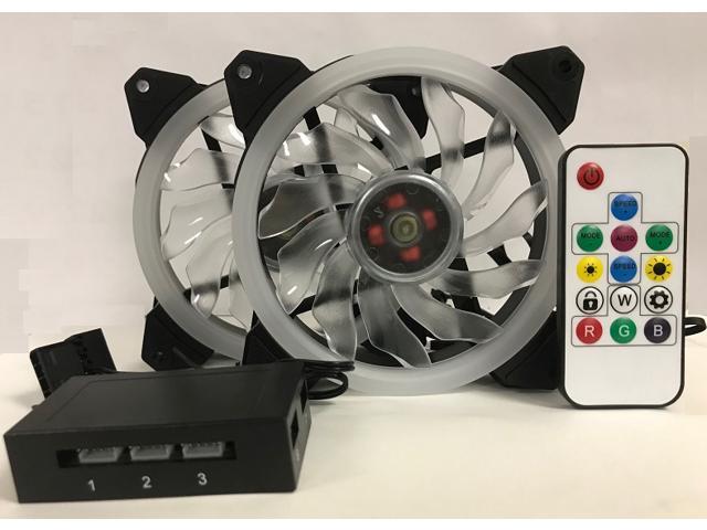 EPOWER 120mm Quiet RGB LED PWM Fan (2-Pack) with 8 Port Fan Hub and RF Remote