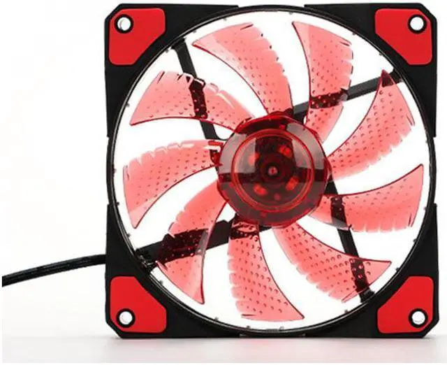 Description: -120mm Sleeve Bearing quiet cooling case fan for computer -15 LEDs Color LED, create a very amazing effect -Combination of high-efficiency heat dissipation and mute, 9pcs fan vanes, There is cut back processing on both external and internal of the fan frame to make a large amount of air and improve the heat transfer, -12CM STANDARD SIZE-Compatible with all types of chassis, Suitable for water cooling, Cold discharge light effect, CPU radiator, side through a version of MOD light efficiency of fan position in the cabinet, Different angles and light show different visual effects. -Case fan power by 12VDC, both TX3 3pin and Molex IDE 4pin are practicable -The fan comes with Anti Vibration Rubber Pads -Our