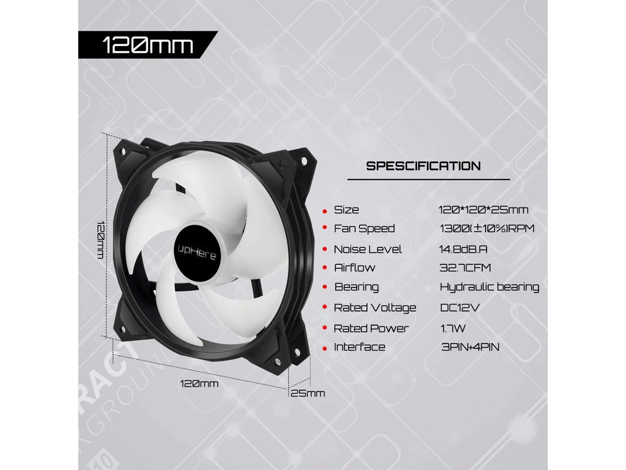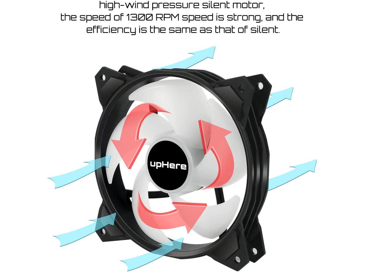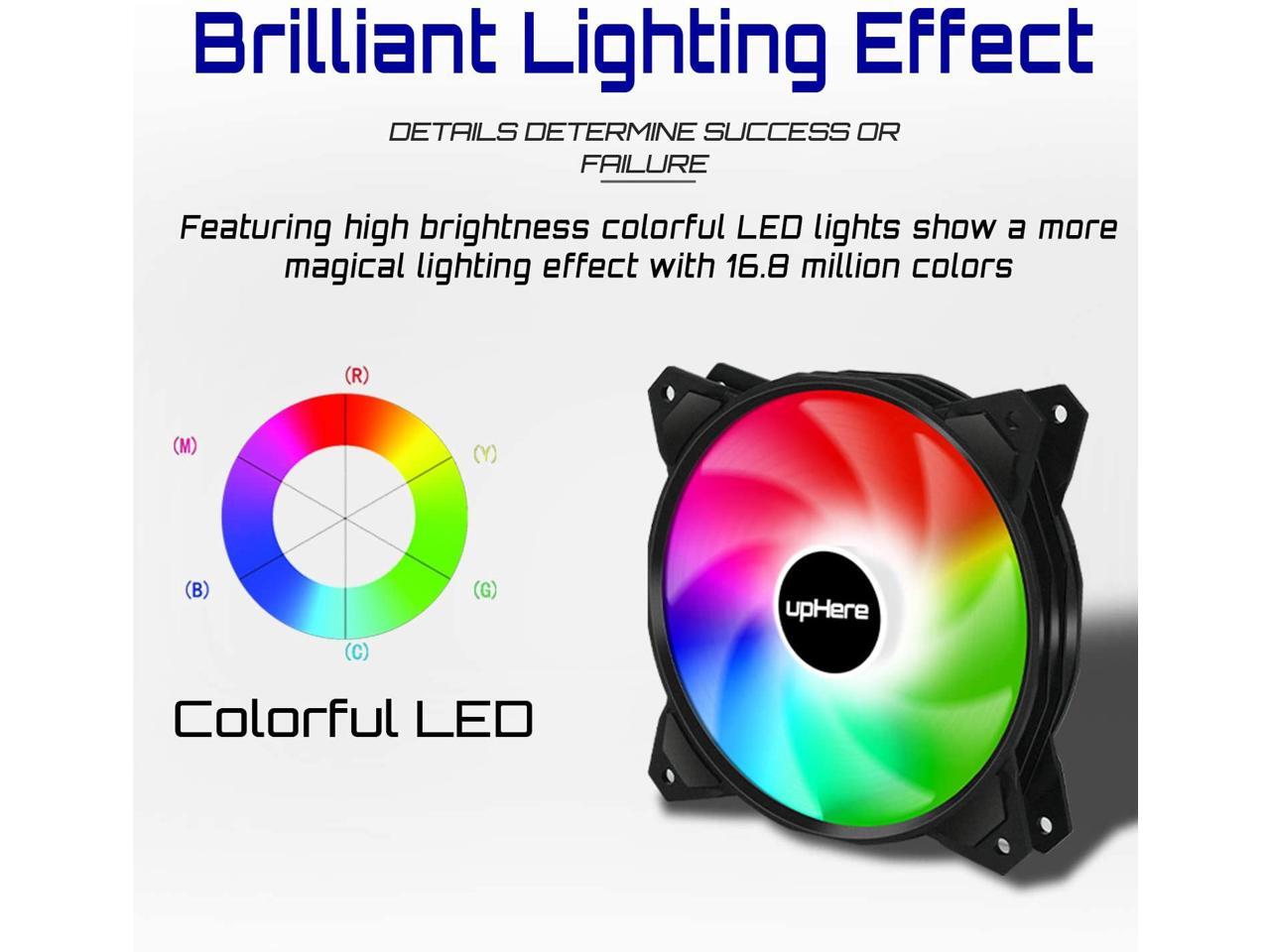 upHere Long Life 120mm PWM 4-Pin High Airflow Quiet Edition Rainbow LED Case Fan for PC Cases, CPU Coolers, and Radiators 3-Pack,(PF120CF4-3)