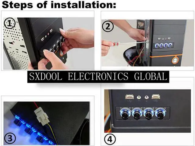 Adjustable 4 channels by volume knob, blue LED will light when powered, is suitable for desktop computer 3.5" floppy drive installation.