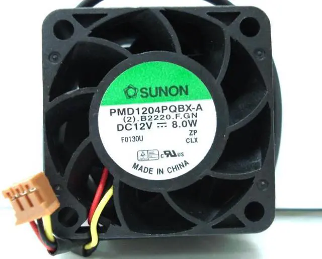 Sunon PMD1204PQBX-A Size40x40x28mm BearingDual Ball Rated voltage: 12V Power; 8.0W Operating Voltage 4V-13V Electric current 0.68A Speed 11500rpm