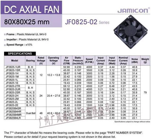 Original JAMICON JF0825B1M-R 8025 12V 0.15A 2P 80*80*25MM