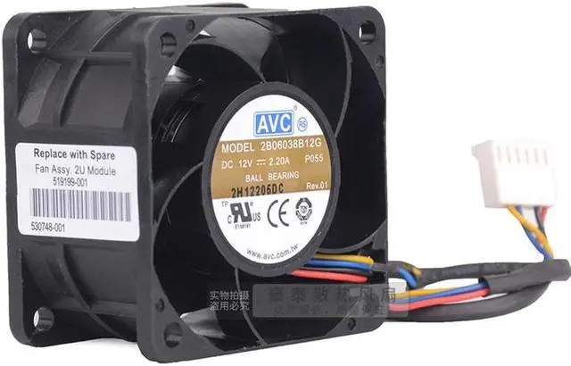 For or HP DL180 G6 G7 519199-001 530748-001 P4300 G2 Fan Brand: AVC Fan Model: 2B06038B12G Fan Size: 60mm x 60mm x 38mm Voltage: DC12V Current: 2.20A Bearing: Ball bearing Lead: 4-wire original plug Cooling Fan with Blue Bracket