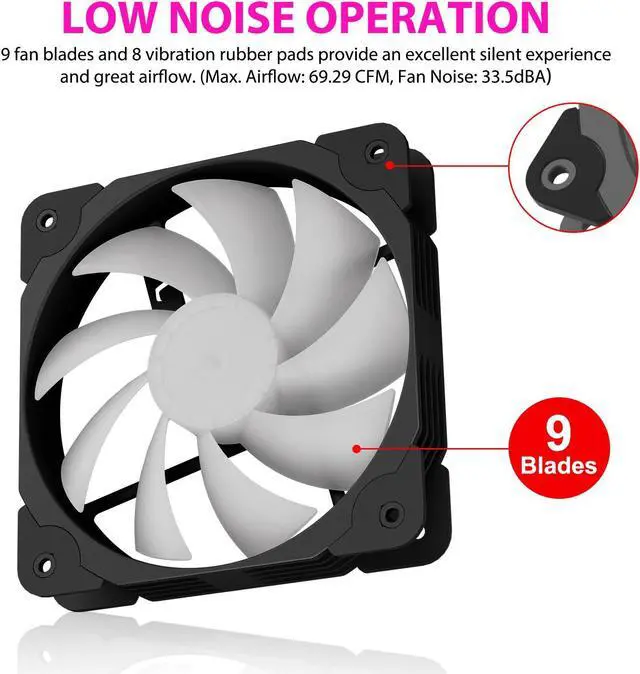 Optimal Cooling Solution: The fan come with nine fan blades for better airflow. It balances the best cooling performance with the lowest noise.