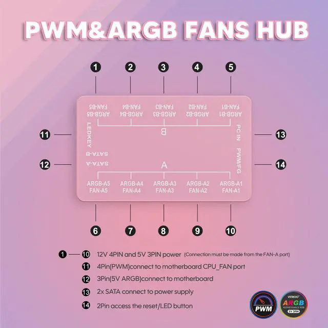 Controller Included: Supports connecting up to 10 fans and controlling both the ARGB lighting effects and fan speeds of all fans inside the case at the same time