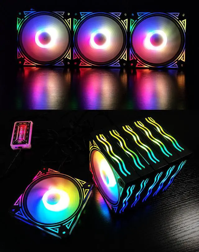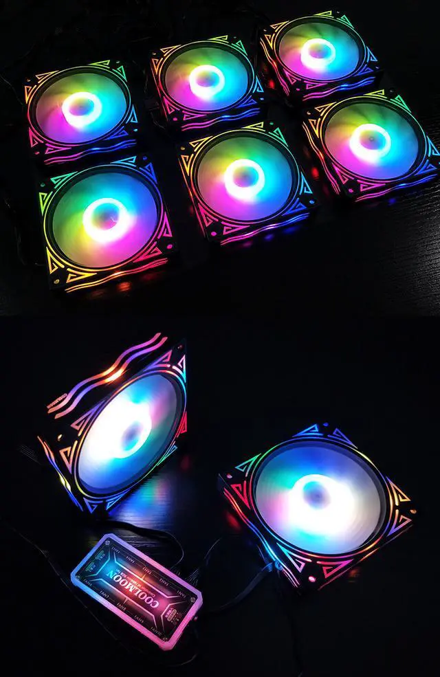 Coolmoon 120mm ARGB Case Fan 5V 3 Pin Motherboard Synchronization Mute Colorful Cooling Desktop PC CPU Addressable RGB Heatsink Cooler with IR Wireless Remote Control & Centralized controller(6Pin Fan)