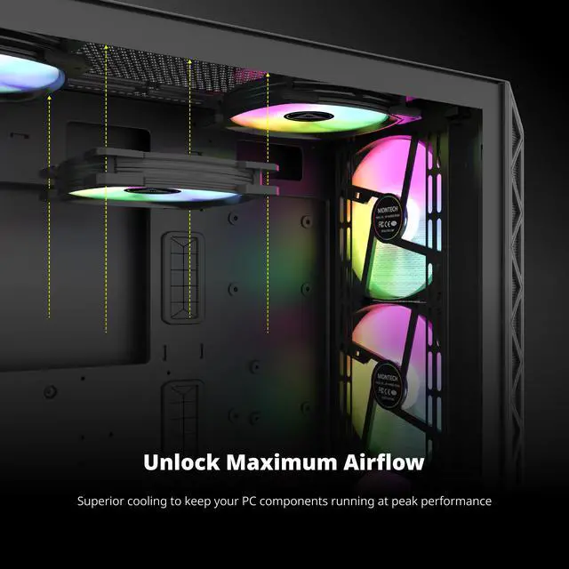 MONTECH HP140 ARGB PWM Rifle Bearing Fan 600-1600RPM, High Airflow Performing Fan 95.61CFM, 4-Pin - 140mm Black
