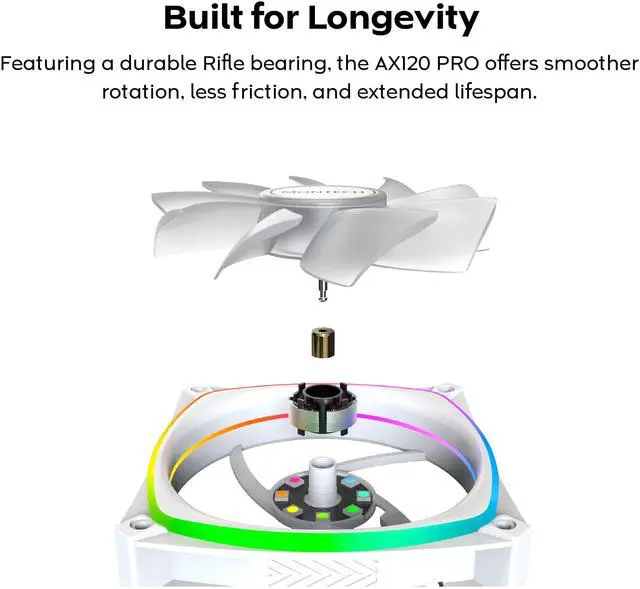 The AX120 PRO builds on the legacy of the original AX series, long established as the cooling backbone of MONTECH's flagship cases and standalone builds alike. This upgraded PRO version refines that proven DNA with enhanced airflow, quieter operation, and radiant design, turning reliable cooling into a showcase of power and elegance.