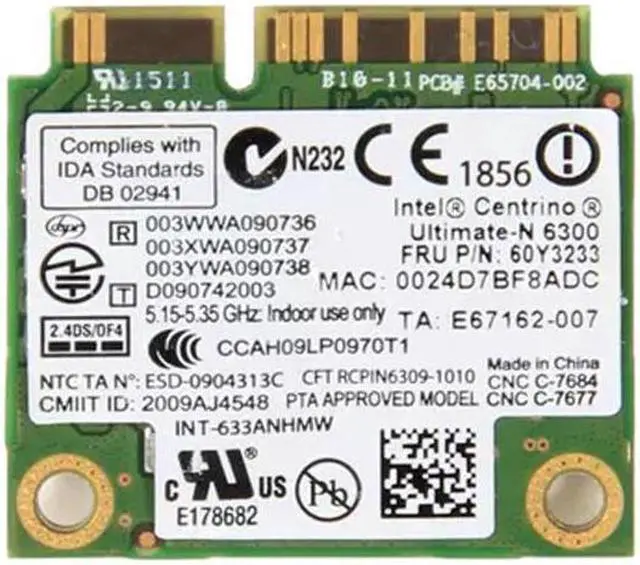 Thinkpad T410 T420 X230 T430 T530 WiFi Card Intel Ultimate-N 6300 FRU 60Y3233