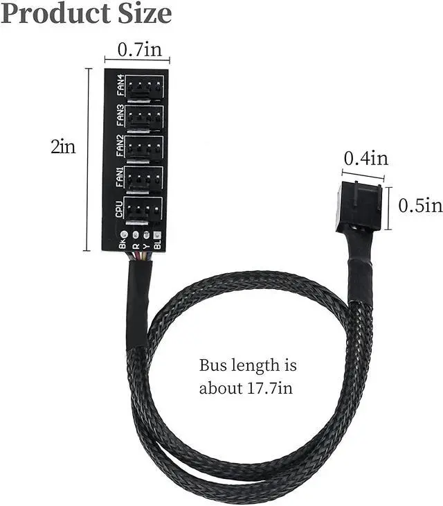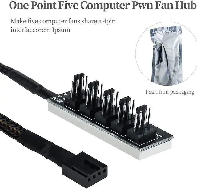 Package includes: 1x 1 to 5 PWM fan hub.