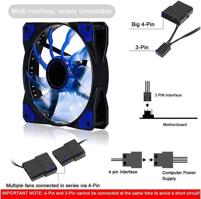 Case fan power by 12VDC, Molex IDE 4pin, are practicable Fan comes with Anti Vibration Rubber Pads Our LED colors: blue, red, white, green, making your PC host has a more abundant.