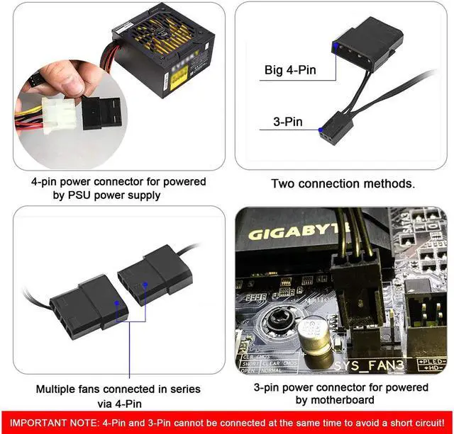 Case fan power by 12VDC, Molex IDE 4pin, are practicable Fan comes with Anti Vibration Rubber Pads Our LED colors: blue, red, white, green, making your PC host has a more abundant.