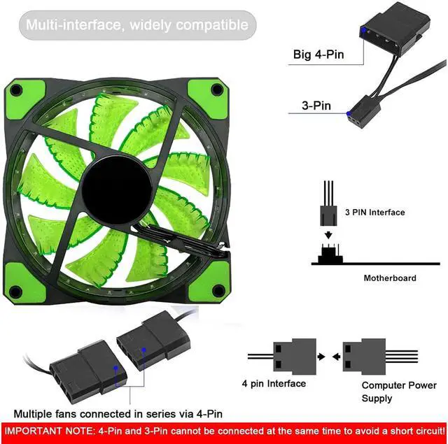 Case fan power by 12VDC, Molex IDE 4pin, are practicable Fan comes with Anti Vibration Rubber Pads Our LED colors: blue, red, white, green, making your PC host has a more abundant.