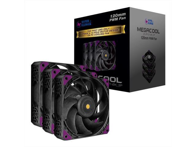 Super Flower, MEGACOOL 120mm fan, Triple-Pack, 12-pole motor design, super cooling performance, PWM, Purple Anti-Vibration Mounting Pads, Computer Case Fan, Remote Control, SF-PF121-BK_3P, 30mm depth